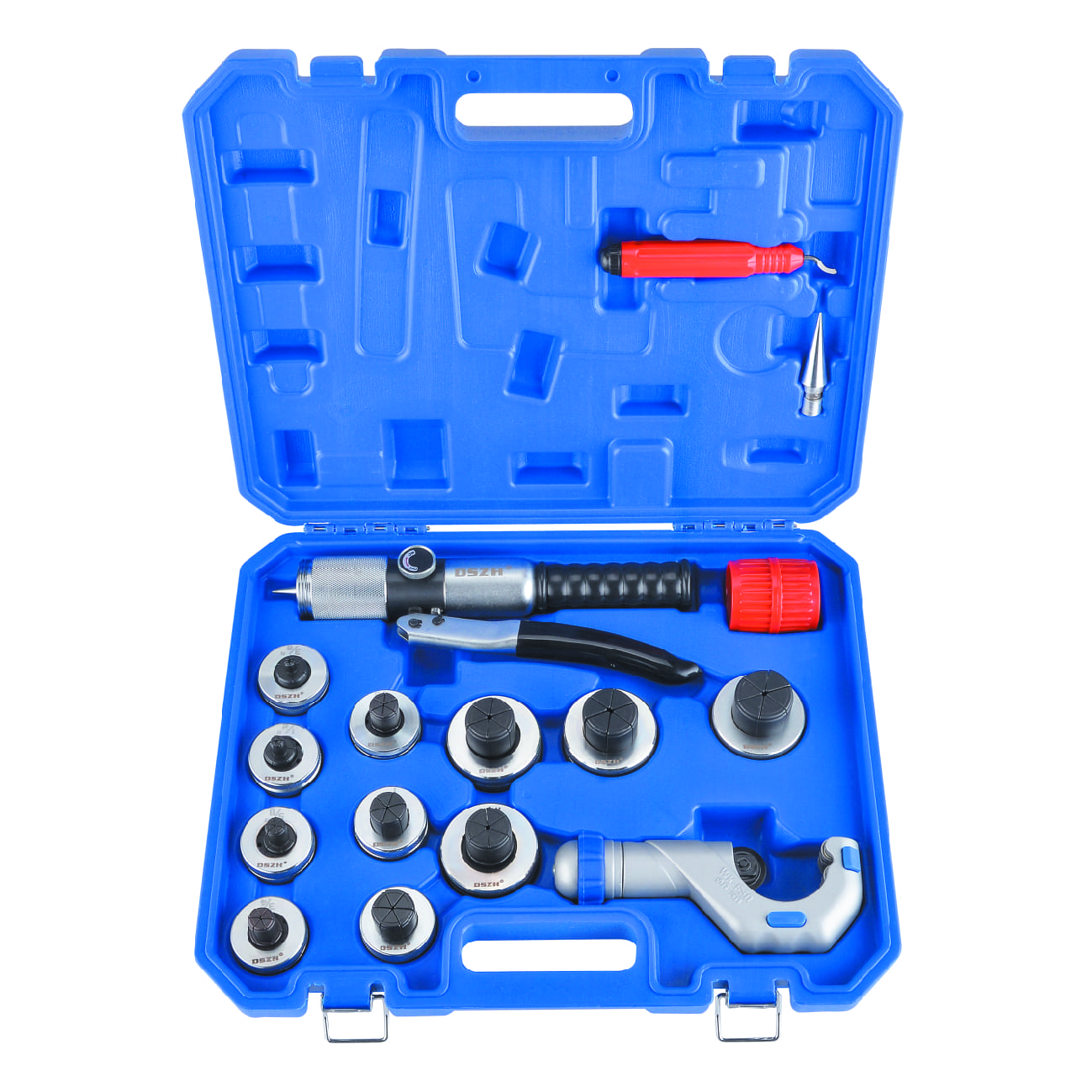 Труборасширитель DSZH CT-300AL служит для безмуфтового соеденения, алюминиевых, латунных и титановых труб. Труборасширитель  гидравлический CT-300AL легкий, удобный, компактный, расширяет размеры  труб 3/8",1/2",5/8",3/4",7/8",1",11/8",11/4",1 3/8",1 1/2",1 5/8". Поставляется в пластиковом кейсе +труборез WK-650+ ример CT-209+ ример-карандаш CT-207